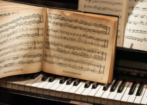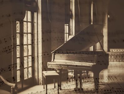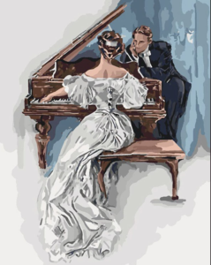 约翰和爱莉丝并肩坐上琴椅,身体轻轻挨在一起。