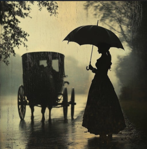 她撑起伞走下马车,示意约翰就在此时、此地,将卡农再唱一遍。