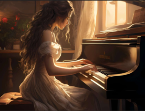 琴声如溪水跳跃,节奏明快而活泼。最后一个音符落下后…….